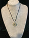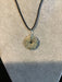 Wire wrapped gemstone donut on18" black satin adjustable cord.