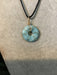 Wire wrapped gemstone donut on18" black satin adjustable cord.