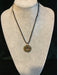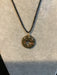 Wire wrapped gemstone donut on18" black satin adjustable cord.