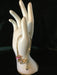 Beautiful gold adjustable snake bracelet with pink opaque glass bead and a white bead with pink crystals and a Sagittarius zodiac bead in the center.